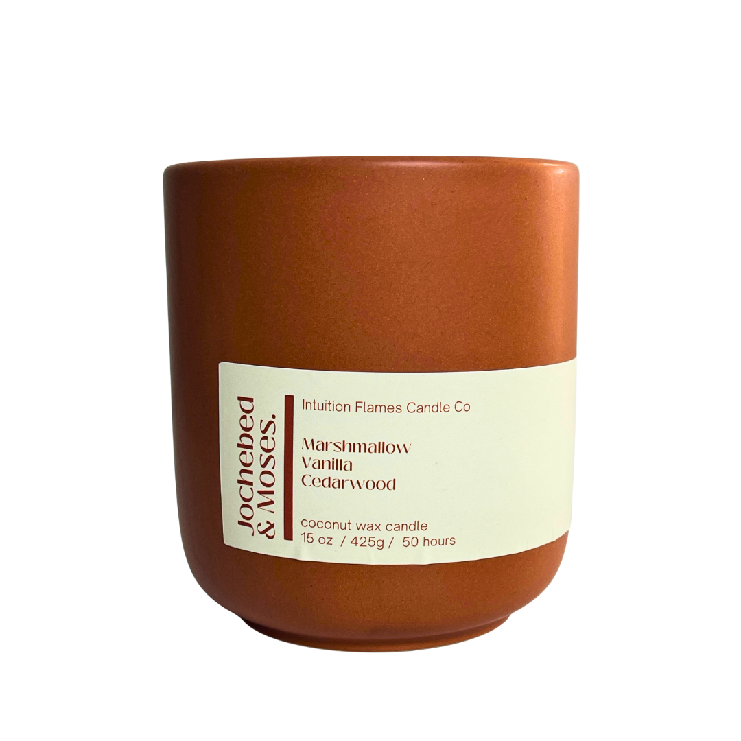 Hand-poured in small batches, this 15 oz ceramic vessel is filled with the soothing fragrance of Marshmallow, Vanilla & Cedarwood, a soft, warm blend that captures the sweetness of love, the strength of faith, and the comfort of God’s covering. Made with all-natural coconut wax and a crackling wooden wick, it offers 40+ hours of burn time, creating a flame that mirrors the unwavering trust of a mother’s heart.